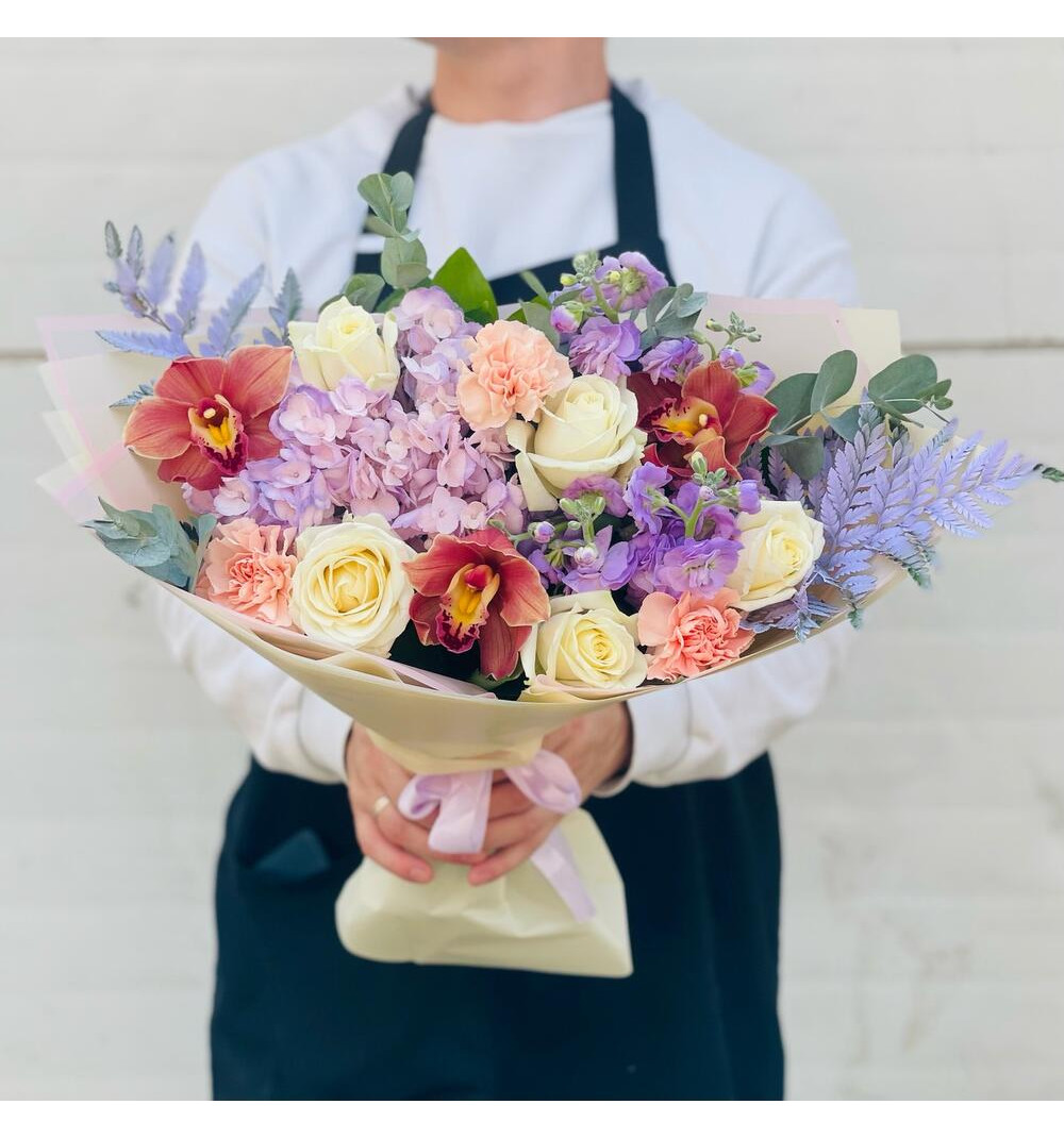 Купить Авторский букет с оранжевыми орхидеями в Ушарале за 25 000 ₸ | интернет-магазин «Guls»