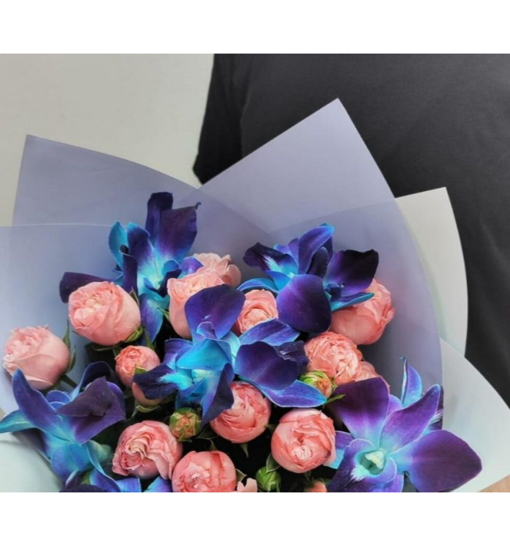Экзотическая орхидея с пионовидной розой - это прекрасный букет, который сочетает в себе красоту и изящество двух уникальных цветов. Орхидея излучает загадочное очарование своими элегантными лепестками и утонченной формой. Пионовидная роза, с нежной текстурой и нежными оттенками, добавляет романтический и нежный акцент к композиции. Этот букет порадует глаз и сердце своей экзотичностью и элегантностью, станет прекрасным подарком для особых моментов и особенных людей.